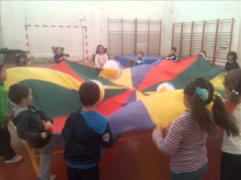 Hoy hemos llevado a cabo una sesión con el paracaidas, en la que en realidad hemos trabajado el juego cooperativo.